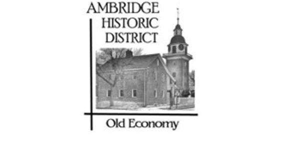 It is located 18 miles NW of Pittsburgh along the Ohio River, in the Borough of Ambridge. This 32 acre National historic district contains original buildings of the Harmony Society, a German communitarian sect that settled here in 1824. Within the Ambridge Historic District is the 6 acre museum of Old Economy Village with 17 restored historical buildings in original locations surrounded by gardens.